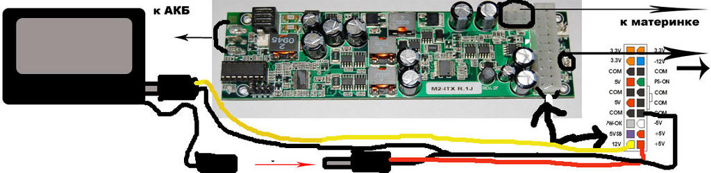 конфиг перемычек такой: 0 0 0 1 5s 30s 60s для питания монитора подпаялся к желтому и черному проводу. планировал запитать от блока и ЮСБ-хаб, поэтому подппаял еще один штекер к красному проводу и тому же черному. в итоге с БП выходит два одинаковых на вид штекера с общей землей, но о одного +12, у другого +5. подключил в машине(питание монитора +12 подключил к к разъему на проводочке) - все заработало кроме монитора: не поступало питание. переставил штекер в разъем возле разъема ВЖА, моник включился. переполюсовки не было, все проверил до подключения. но стало интересно, почему не работал от разъема на проводе(дома от родного БП 220v-12v работал и от того и от того разъема). похоже штырек разъема не касался плюса, я его отверткой раздвинул и вставил штекер. комп выключился резко. смотрю, я и на монитор подал питание на оба разъема. на разъем возле ВЖА 12в, на тот, что не шнурке 5вольт. пробую включать, на бп, как и положено, через 5сек загорается зеленый светодиод, отключаю АСС, он гаснет через время. может даже через 30+60сек. думаю БП рабочий, спалил мать. привез домой, мать запустилась от АТХ БП, монитор тоже. подал питание на М2-ITX, ничего. только диоды горят и все. предохранители звонятся, визуально ничего не сгорело и целое. Может поставите "диагноз на расстоянии"? думаю, я закоротил +5 и +12 между собой. П.С.: собрал все, проверил, и надо ж было лезть к тому разъему. копец, короче. ![]() |
