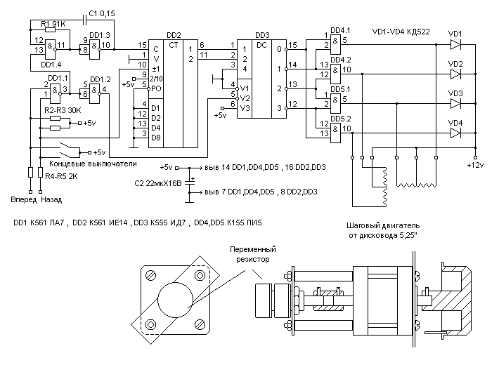 Отказался я от этой затеи, сложновато для меня... Сделал редуктор, нешёл моторчик от сидюка с регулировкой скорости вращения и ременную передачу.