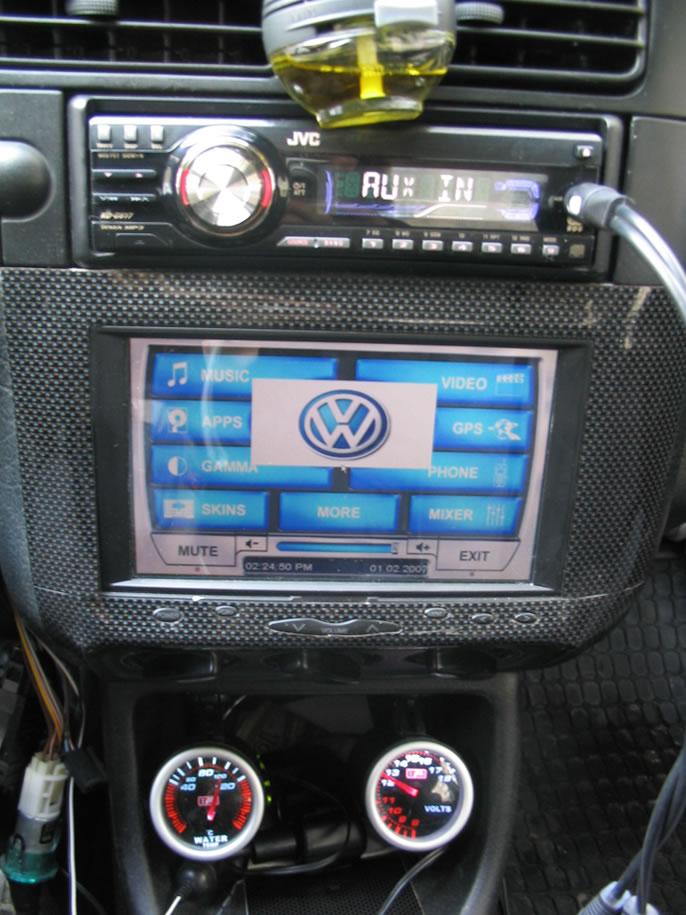Что было сделано: 1. Поставлен моник Prology PCM-700T (нафига брал с ТВ не знаю). 2. Собран, из того что было, комп: Athlon 1800+, мать Chaintech mATX socket A nForce 2 (видео и аудио интегрированы), 768MB оперативки, Wi-Fi Dlink-520+, хард на 80 Гб 3.5. 3. Сделан корпус из оргстекла, толщина 5 мм. 4. Куплен и установлен БП SL (за него отдельное спасибо Сергею). Музыка уже была установлено до задумки поставить комп в машину и представляет собой: голова JVC KD-G617, колонки в торпеде Cadence 8 см, в передних дверях штатные ( в планах Morel impulse 8), усилок Blaupunkt GTA2100 (старенький но мне хватает), саб Kicker 12" в фиг знает каком корпусе (корпус будет переделываться). Из планов: 1. Поставить USB хаб 2. Купить маленькую клавку (а то что ща есть - не удобно юзать ) 3. Вынести хард в отдельный корпус и поставить его где нить под торпедой, и главное что бы был съёмным, а комп грузить с флешки. 4. Купить и поставить камеру. 5. Доделать обшивку багажника и сделать шумку. Пока что юзаю маздай с RR со скином Alpine. |