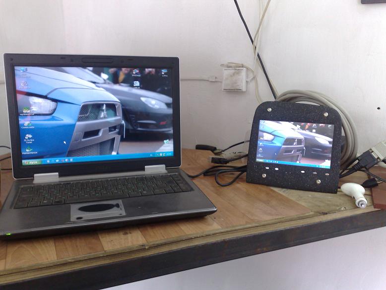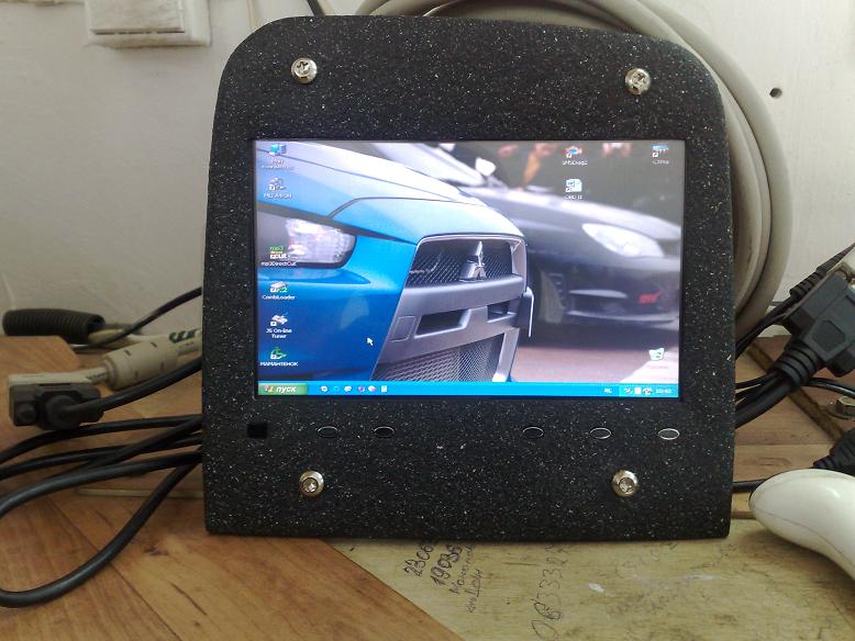 Изготовление мониторной(7" с питанием от БП) рамки с покраской и сушкой в центральный воздуховод заняло два дня( верхняя и нижняя части воздуховодов приклеенны к передней части монитора двухкомпонентной эпоксидкой, дальше стекловолоконная и чистовая шпатлевка BODY, потом эпоксидная высокотемпературная краска(для усиления,6 слоев), и наконец 2 слоя краски под "камень").