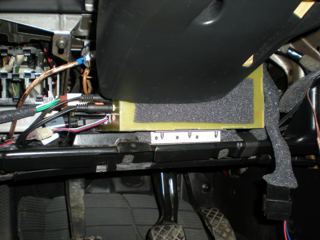 Сама установка в машину, место под рулевой колонкой. Все стало как удто прям там должно и быть, и даже место еще осталось! И кабеля от монитора идут сразу на системный блок ,без удлинителей!