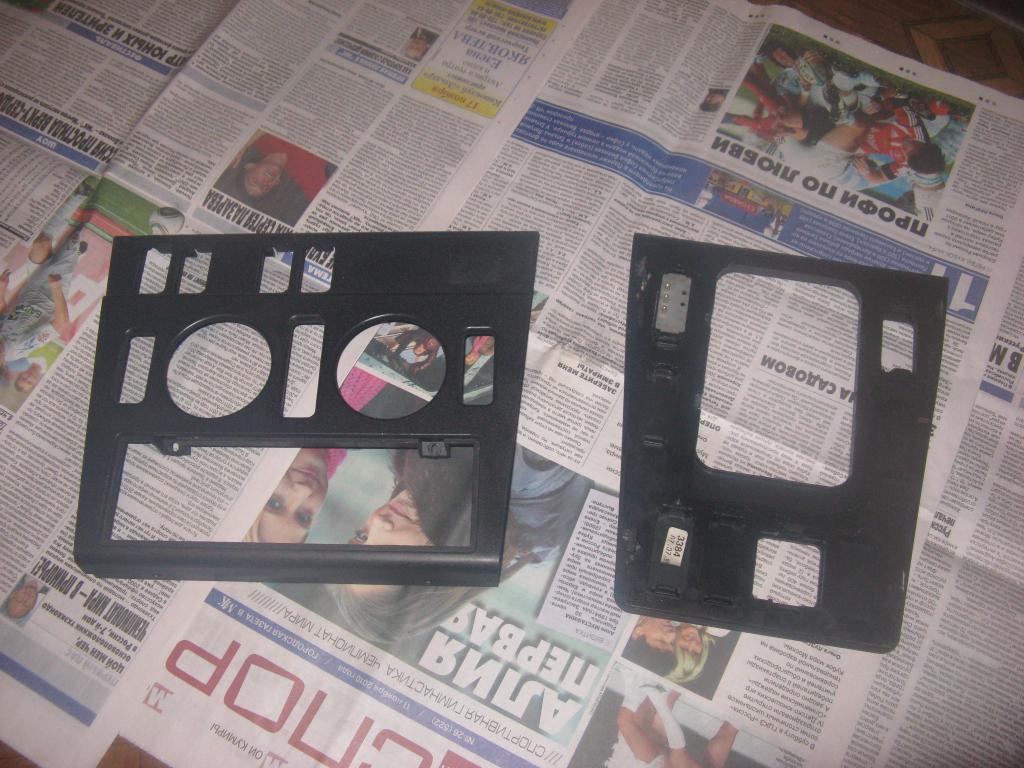 Решено перенести 4 кнопки сверху (аварийка, ЦЗ, задние подголовники, подогрев сидений) вниз на рамку ручки КПП, чтобы установить на их место 1/2 DIN сенсорный монитор. На данный момент панель разобрана и попилена. Обтягивается пленкой под карбон.