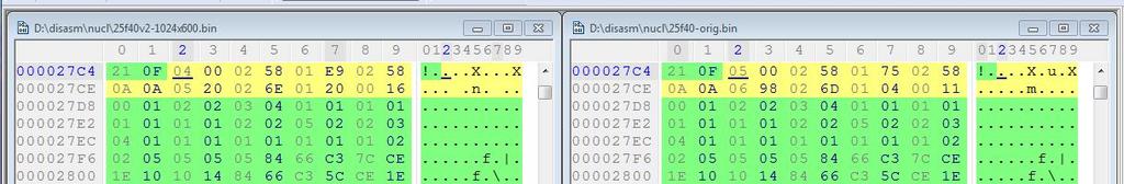 есть у реалтека набор микросхем RTD26* RTD25* и два типа стандартных библиотек. качаем DTD Calculator Забиваем разрешение: заходим в регистри хак устанавливаем +1 режим, заполняем, райт то регистри, перегружаемся, устанавливаем 1024х600. С удивлением обнаруживаем, что разрешение у нас устанавливается с маппингом. (обязательно запишите разрешение и развертку!!!!) Рядом с RTD стоит флэшка сериальная, для начала нужно ее считать. моя была полмегабайтная. берем полюбившийся HEX-редактор и ищем в дампе структуру вида: Код: