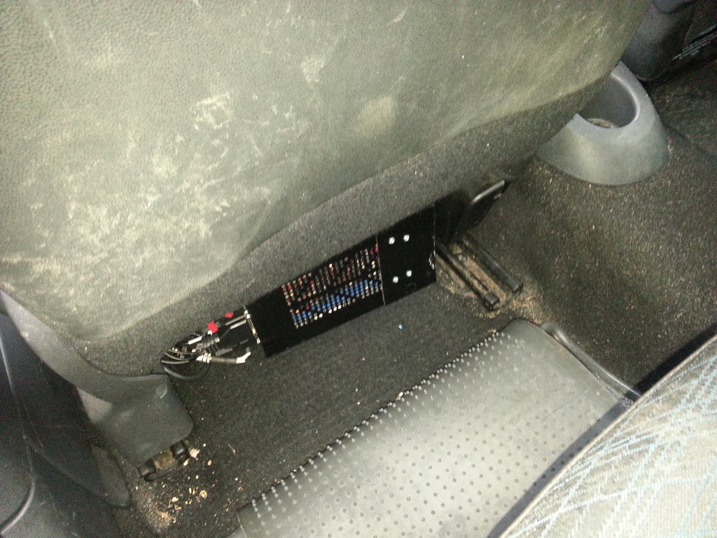 Если положить блок приёмника под левую ногу (там где она отдыхает, пока на сцепление не давит) - тогда оба передних датчика и левый задний ловятся на ура, но не ловится задний правый, так как до него получается большое расстояние.
