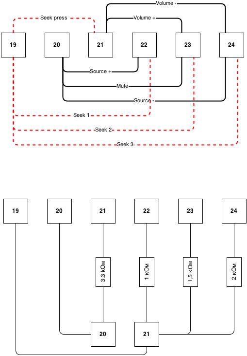 Ниже собственно сам резистивный "интерфейс" - сначала думал сделать красиво - на макетной плате, но оценив гемор с этим всем и то в каком невидном месте оно будет лежать - просто спаял и запихнул в термоусадку: