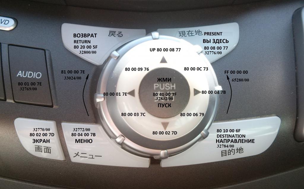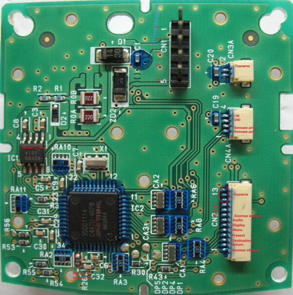 Вторая часть изысканий по теме реверс инженеринг панели управления Honda Odyssey RB . На обратной стороне доски есть два разьема, один идет на резистивные кнопки, второй подключен к джойстику и кнопкам вокруг него. Назначение контактов на картинке...