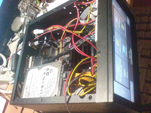 Привет тоже думал над этим вариантом. Скажи почему выбор пал на VGA версию а не HDMI? Каким образом разместил винт, колхозил или там штатное место есть? Фотки случайно не осталось как с тыльной стороны все подключено? Блок питания не поместился в корпус?