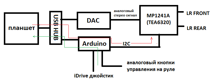 Долго изучал форум, уже закупаюсь, и появилась идея вывода звука. Вот накидал структурную схемку. Есть такая платка. Она разбивает стерео сигнал на фронт и тыл с регулировкой громкости, высоких частот и баса. Также в ней есть тонкомпенсация (loud). Регулировка происходит по шине i2C. Суть в том что arduino будет управлять платой регулировки (тем более что связь Arduino c платой уже написана) Есть идея сделать управление с планшета как на китайских магнитолах на андройде. Так вот вопрос к знатокам: Какую ардуино заказывать чтобы можно было с планшета управлять ей плюс использовать эту же ардуино для подключения физических кнопок управления планшетом? |