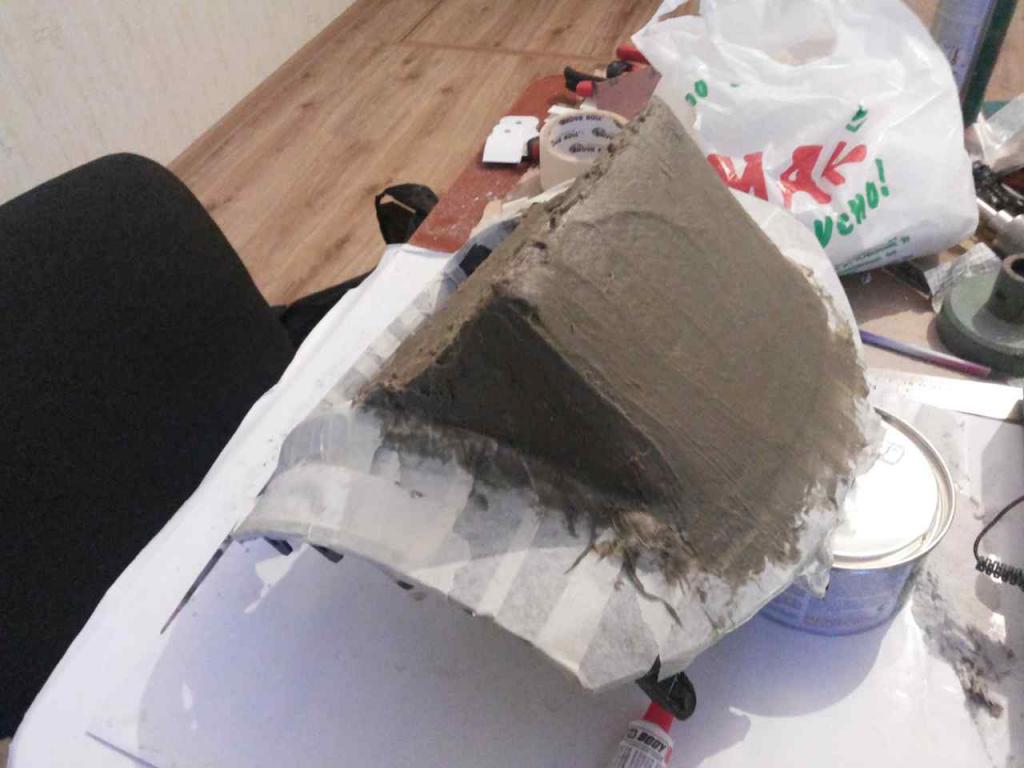 Следующий этап за пенил (фоток процесса нет), нанес шпатлевку эпоксидную с фиброй.
