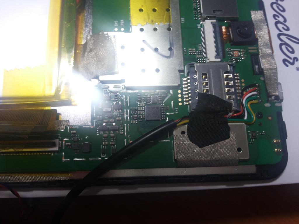 На плате обнаружились пятаки, которые дублируют контакты usb , под паял к ним и вывел гнездо micro usb которое отрезал от Y - коннектора. |