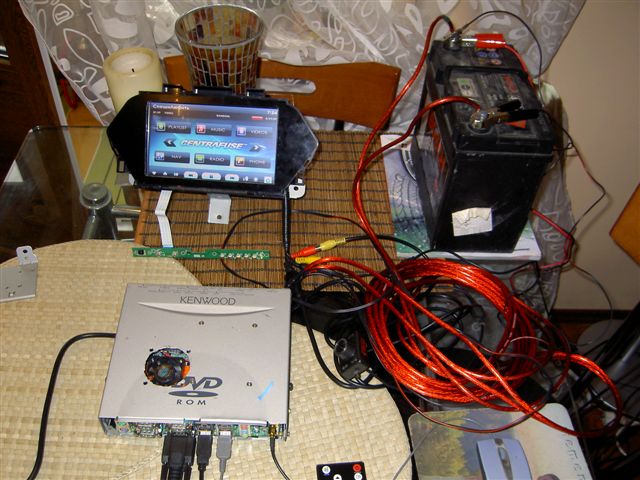 ![]() Но, не потому, что заглох процесс постройки компа в MDX, нет. Просто я достаточно ленивый в написании большого количества букв человек. Разбирал фотки на компе и наткнулся на тот небольшой децл фоток, что делал при установке. Так что взял себя в руки и решил натыкать пару-тройку килобайт на клавиатуре ![]() Как я написал в первом посте темы, планировал сделать инсталл в стиле многоуважаемого Slden'a - т.е. берем его контроллер и оставляем родной монитор. Однако, душа карписишника не смогла смириться с разрешением штатного моника, да и интегрированое видео на 965 чипсете не смог заставить выдавать картинку, поэтому было принято решение выкидывать родной моник нафиг. Восьмерка формата 3:4 выглядела бы слишком громоздко, поэтому решил запихнуть формат 16:9, тем более он как нельзя лучше подходил по размерам - практически такой же как и штатный. Снимаем родной моник, разбираем корпус, вытряхиваем из него всю начинку и запихиваем внутрь новый моник. На фото видна плата клавиатуры монитора, на самом деле она не понадобилась. Взял фотодиод (или как он там называется) с клавиатуры и разместил за черной пластиковой передней панелью - она покрашена, но инфракрасный пропускает, поэтому для регулировки параметров монитора использую пульт. Несмотря на ликвидацию штатного моника, остальные штатные мультимедиа компоненты (магнитола, навигационный комп, потолочный монитор) решено было оставить и интегрировать комп со всем этим барахлом. Причин тому несколько - во-первых, не хотелось ставить усилок (знаю я эту болезнь, как тока поставишь, сразу захочется поменять родную уккустику, опять ваять саб, и т.д... ).Во-вторых, штатная камера заднего вида питается от навигационного компа, напряжение питания 8 вольт - пришлось бы делать преобразователь. В-третьих, навигационный комп окромя бесполезной нави по штатам обладает системой диагностики авто, терять ее не хотелось. В-четвертых, всяческие навороты типа TPMS, изменение громкости в зависимости от скорости, блютуз уже есть в штатной навигашке и перекладывать на CarPC функцию их замены смысла нет. Родная навигашка не имеет естесственно VGA выхода - только RGB, поэтому для того, чтобы видеть, что там вещает навигационный комп был куплен за смешную сумму (450ре) преобразователь RGB -> CVBS. Соответственно, новый моник работает в 3 режимах: CarPC, Video2 - камера заднего хода (с автоматическим переключением от сигнала REVERSE) и Video1 - собственно родная навигашка (переключение в режим ручками, с пульта). Картинка после преобразования конечно не пиксель в пиксель, но достаточно для того, чтобы смотреть на нее без тошноты. MDX машина большая, места внутри дохрена, но это не повод забивать свободное место громадным компом на плате ATX формата. Да и не люблю я всякую хрень, кушающую по 200 ватт... Автомобильный комп должен быть быстрым и мало жрать, иначе это уже не автомобильный комп. В итоге моя конфигурация построена на Mini-ITX с мобильным Core2Duo и жрет в пике 45 Ватт вместе с монитором ![]() Для корпуса выбрал старый DVD корпус от покемонской балалайки, оставшейся от моего праворульного детства. Не хочу хвастаться, но по-моему это самый маленький корпус для платы формата Mini-ITX - размеры 200х180х45 ![]() Как не странно, но ставить дополнительный вентилятор не понадобилось, хватило дырки над штатным вентилем процессора. Размеры корпуса предъявили жесткие требования к раз