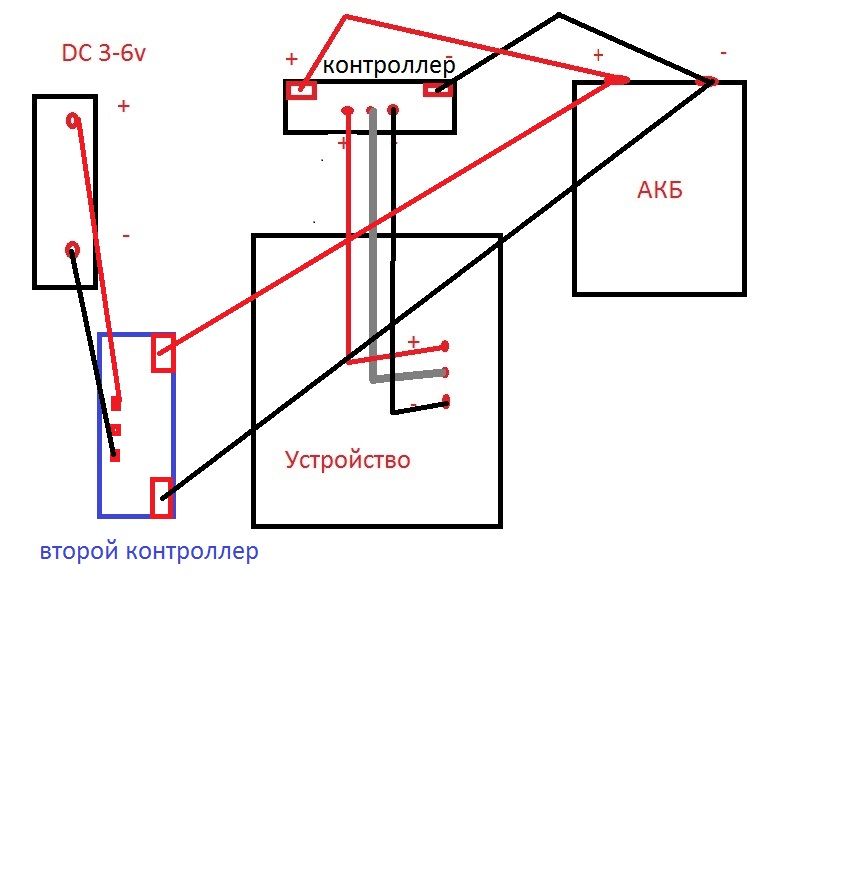 Ввиду срочности вопроса ( 2 дня до отпуска (думал все поставить на даче), нужен рабочий проект) прошу не ругаться если такие вопросы были ( в чем не сомневаюсь). Нужна помощь, неделю строю системку на планшете в машину. Мучает вопрос с питаним. Пробовал OTG и зарядку одновременно - не работает. Читал по этому много, но к моему случаю не применилось. Вскрыл планшет, отпаял АКБ с контроллером и к самой плате планшета припаял внешний DC преобразователь (переводит напряжение из 12в в диапазон от 3 и выше) . Контакта на плате три - красный, белый,черный. Подпаялся + и - = не работает, замкнул + и белый = включился.Работает минуты 2-3 = выключается.Вернул батарейку с контроллером = все работает. В итоге думаю , а можно ли сделать так, чтобы АКБ питала планшет и заряжалась через имеющийся ( или дополнительный, я хз) контроллер от внешнего преобразователя ? Для наглядности случая три рисунка. 1) имеющиеся устройства и тд (как вариант накидать черточек куда что соединить,чтобы понял такой балбес как я) 2) Как было когда открыл планшет. 3) Как я вижу доп контроллер ( я чайник редкостный, но осталось 2 дня до отпуска и нужна рабочая модель , приходится фантазировать). Буду рад любой помощи. |