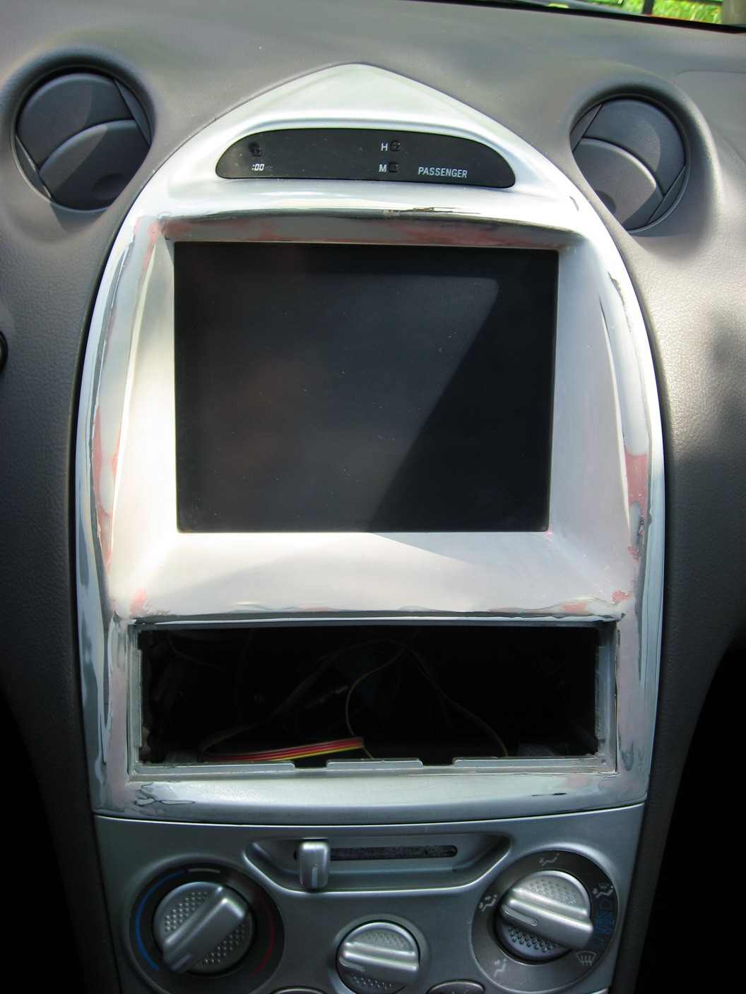 После установки компьютера в мою машину, моей девушке захотелось иметь что-нибудь подобное в своей. Тем более, что в последнее время приходится много ездить по закоулкам Москвы с труднопроизносимыми названиями, и навигация в машине стала просто необходимой. Я постарался учесть все ошибки, которые обнаружились за 2 месяца эксплуатации моего компьютера. Также, посоветовавшись с Юлей, я понял, что предполагаемая система должна будет отвечать следующим критериям: 1. Надежность (отказоустойчивость) на аппаратном и программном уровнях. 2. Минимальное вмешательство в видимые элементы салона (ничего не резать, нигде не сверлить) 3. Легкий монтаж и демонтаж системы впоследствии 4. Длительное использование системы не должно быстро сажать аккумулятор 5. Минимальный и достаточный набор функций - навигация и прослушивание музыки 6. Штатная аудиосистема должна быть сохранена 7. Решение должно быть максимально бюджетным 8. Простота использования во время вождения автомобиля Итак, пациент: ![]() Тойота Селика ГТ, автомат, американка, сток. ![]() Систему решено было делать на основе моего старого ноутбука, который почти за два года использования в моей машине отлично себя зарекомендовал. Характеристики: LG LU20-166R, Intel Celeron 1.6, 512MB RAM, 100GB HDD, Дисплей 12.1", 1024x768. Графическая карта Intel Extreme Graphics 2, 64 Mб. Модем V.92, 56 Kб/с. Сетевой адаптер 10/100 Base-TX Ethernet. Wi-Fi. Кардридер. FireWire. Но главной особенностью данного ноутбука является поворотный экран (не сенсорный), что превращает его в планшетный компьютер. Поехали! ![]() Снимаю рамку вокруг селектора АКПП и центральную консоль. Подключаюсь напрямую к проводам прикуривателя. ![]() К другому концу провода подсоединяю стандартный Молекс-коннектор для быстрого подключения к блоку питания ноутбука. Есть контакт! ![]() Моя старая система для крепления ноутбука, изготовленная из кронштейна для крепления телевизора на стене. Делал ее давно, именно под этот ноутбук, главным критерием была безопасность использования (отсутствие острых углов, что критично при возможной аварии) и легкость крепления. ![]() Закрепленный на ней ноутбук ![]() Центральная консоль в сборе ![]() Блок питания ноутбука и другая периферия должны был разместиться в перчаточном отсеке центральной консоли. Используя дремель, делаю в торце лючка небольшой разрез для вывода наружу проводов питания и USB-входа. При закрытом лючке этот разрез не виден. ![]() Также расширяю маленькое вентиляционное отверстие в задней части перчаточного отсека, чтобы можно было просунуть штекеры проводов. Так или иначе, на Совке были куплены: ![]() Адаптор питания для ноутбука от прикуривателя универсальный (не помню, сколько стоит, покупал еще 2 года назад) Кассетный адаптор с линейным входом для подключения к штатной аудиосистеме (450 р) ![]() Внешняя звуковая карта USB (300 р) Беспроводная мышь для презентаций (в последний момент от нее отказались в пользу трэкбола) Инфракрасный пульт ДУ с возможностью программирования функций (600 р) ![]() USB-концентратор на 4 порта. Из-за малого энергопотребления подключенных устройств было решено не использовать дополнительное питание концентратора (то есть он работает в "пассивном" режиме) (300 р) GPS-приемник с интерфейсом USB BU-353, GlobalSat, SiRF Star III chipset (1500 р) ![]() Связка из блока питания, USB-концентратора и подключенной к нему звуковой картой четко уместилась по высоте перчаточного отсе
