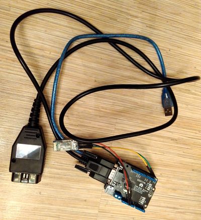 Скетч для блока питания, как уже и писал выше, а взял у Chubaka885 только обрезал его, оставив лишь управление питанием. Все вместе со схемой выложил тут. Светодиоды это реле датчика холла и питания хаба, а выключатель, это ACC автомобиля. На всякий случай скетч выложу и тут: Rabochiy_Bloc_Pitania.rar Скетч для подключения к Can-шине с целью подключения кнопок на руле и прочих фишек, пока не доступных. Тут буду писать заметки по ходу работы, в дальнейшем систематизирую. Хочу отметить огромную работу, проведенную в этом направлении, пользователем Farman Фактически это все его разработка, я лишь повторил его опыт с максимальным упрощением, тк моего опыта не хватало для полного воплощение в жизнь его проекта, да мне и не нужно было. Я взял только основные вещи. Ссылки на темы и приложения, созданные им: "CarPC на базе Radxa" на Drive2 Подробнее на www.opel-insignia.su Демо и полная версия программы под Android И наконец его видео Надо заметить, что я пошел немного другим путем почти во всем, поэтому пришлось во многом разбираться самостоятельно. В частности, кроме того что Farman использовал не Nexus7, а полноценный компьютер на Radxa, он так же использовал не Arduino, а ее клон Elduino CAN128, вот сайт разработчика, там же можно с ним связаться и приобрести данный микроконтроллер. Из отличий - это уже встроенный Canbus Shild, а так же Lin - что дает практически не ограниченные возможности в управлении автомобилем, в частности дает возможность например подключения штатных кнопок, и джойстика Insignii. Когда Farman воплотит это в жизнь, я наверно тоже подумаю о переходе на данный контроллер. Пока же я, как упоминал ранее, стараюсь пойти наиболее простым и универсальным путем. Итак, после первоначальных опытов с Arduino, осталась одна Leonardo, и блютуз модуль к ней, с ними и будем работать. Что бы снять лишние вопросы, покупал тут: Leonardo R3 Pro Micro ATmega32U4 Wireless Serial 6 Pin Bluetooth RF Transceiver Module HC-05 RS232 CAN-BUS Shield В качестве канбас шилда Farman мне советовал CAN-BUS Shield от Seeedstudio , но меня задушила жаба, и я купил аналог от ElecFreaks в 2 раза дешевле, о чем и не жалею. Вот на него вся документация. Рабочие заметки: 1. Макет для опытов. Тк все хочу объединить в одной Ардуине, то для начала собрал копию блока питания на столе: Источник 12в - аккумулятор от мото. Преобразователь 12 в 5 использовал от разломанной автомобильной зарядки телефона. Залил выше указанный скетч, все заработало. 2. Разберемся с подключением блютуза. Подбирал Bluetoth модуль с индексом HC-05 (он имеет больший функционал чем 06, советовал его мне farman, вот тут можно по подробнее почитать). Из имеющихся на Bluetoth модуле пинов, нам нужны только 4: питание "+" и "-", и сигналы "Rx" и "Tx". К сожалению штатно ее в Leonardo не воткнешь, поэтом припаиваем провода и подключаем "+" и "-" питания к 5-ти вольтам, а сигнальные выводы к аналогичным выводам Leonardo, только с перекрещиванием, те "Rx" подключаем к "Tx" и наоборот "Rx" подключаем к "Tx". Заливаем скетч для проверки правильности подключения Bluetooth (внутри подробные комментарии): Bluetooth_OK.rar -Запитываем Arduino (можно по USB, подключив кабелем к компьютеру) -Устанавливаем на телефоне или планшете простейший Bluetooth Terminal, заходим в настройки Bluetooth на Android, находим наше устройство, подключаем (попросит пароль - 0000 или 1234 или 1111 - пробуйте, как менять написано тут), далее заходим в Bluetooth Terminal, выбираем наше устройство и на экране должны побежать цифры счетчика. -Посылаем символ "1" - видим загоревшийся диод на выводе 13 (он 