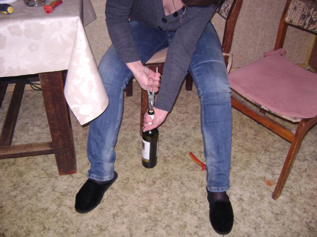 втыкаете в пробку почти на всю глубину пробки, и медленно вращая пробку потихоньку тянете вверх нож. Пробка проворачиваясь следует за ножом. Девочки пищат от удивления и умиления, а вы в ее глазах становитесь еще больше мужчиной))) проделано было лично, не однократно. |