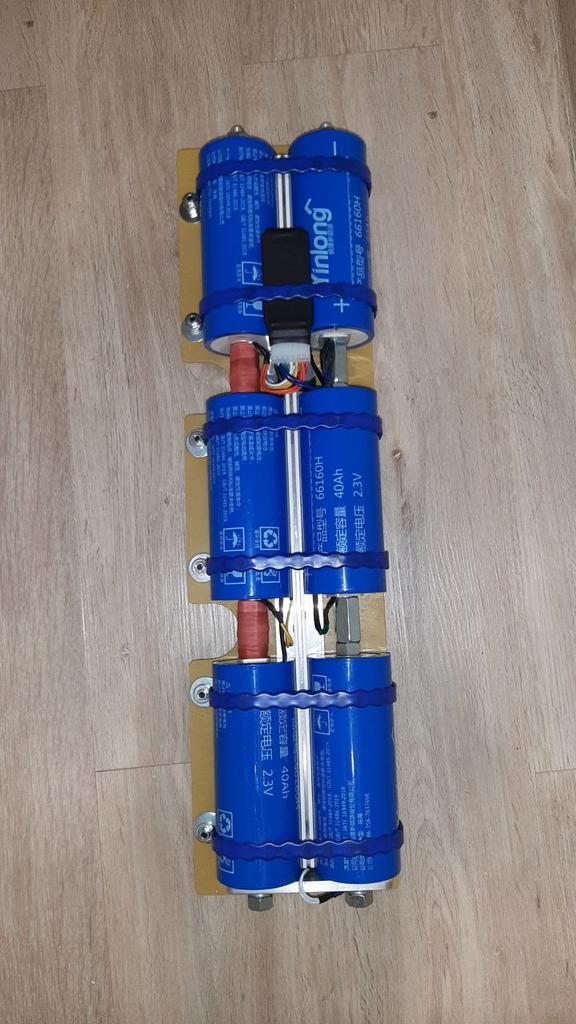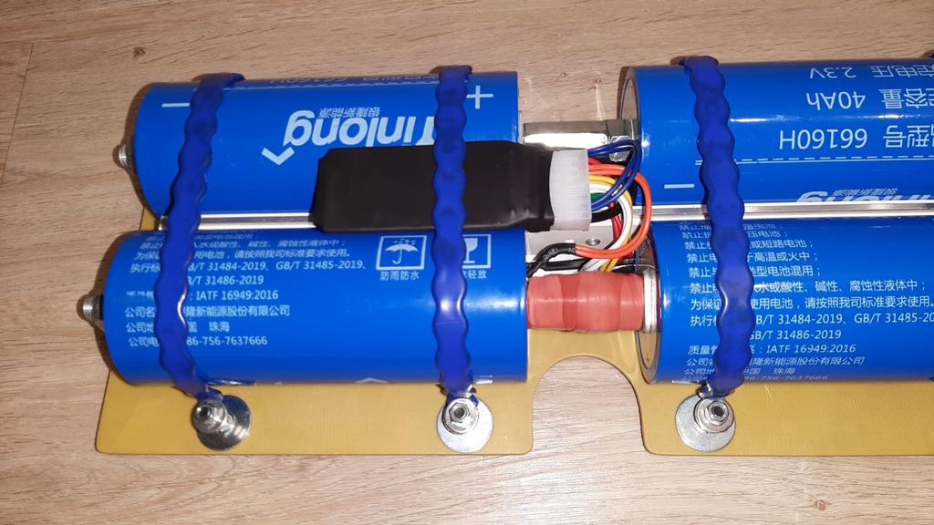 Следующий элемент схемы -- сборка литий-титаната, состоящая из 6-сти батарей по 40А/ч. каждая. По моему мнению, титанат на сегодня одно из лучших решений для питания оборудования в авто.