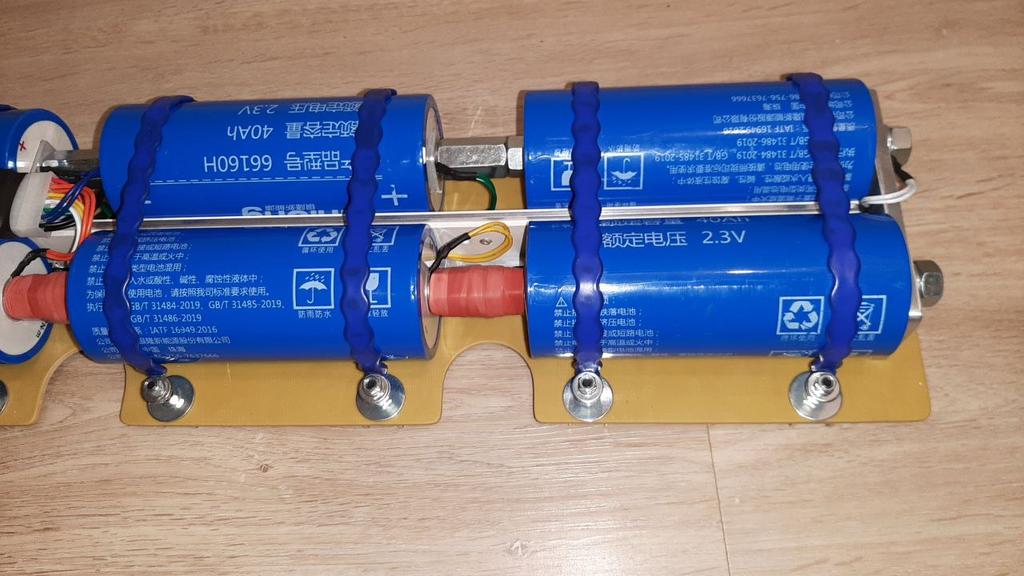 Неоспоримые достоинства: низкий саморазряд, не боится глубоких разрядов, длительный срок службы (количество циклов заряд/разряд, даже с учётом оставшегося ресурса — 20000-25000), низкая возгораемость, стабильная работа -50 до +65, причём заряжается и при минусовых температурах, высочайшая плотность тока-- важнейший показатель для источника питания, низкое внутреннее сопротивление и как следствие --способность очень быстро принимать заряд и так же быстро отдать значительный ток разряда, что очень важно для автозвука. Ни кислотные, ни AGM аккумуляторы этим похвастать не могут. Если титанат используется, как основной АКБ под капотом (или, как "помощник" при кручении стартером), то гарантирован запуск двигателя при очень низких температурах. Единственный минус -- это его высокая стоимость. Отдельные "банки" титаната для сборки в батарею желательно подбирать с близким внутренним сопротивлением. Обязательно использовать балансир -- устройство выравнивания напряжения на каждой "банке", соединённых последовательно, что значительно повышает характеристики батареи и положительно сказывается на сроке её службы. Одним из лучших пассивных балансиров, на мой взгляд, является разработка Новосибирских умельцев -- надёжный и безглючный. Так может выглядеть сборка последовательно соединённых "банок". Как выглядит сборка у Андрея, думаю, что он сам выложит фото чуть позже... Сборку титаната рекомендую подключать первой на линии подзарядки из подкапотного пространства (на клемму "плюс" титаната приходят два провода - один со стороны генератора, второй со стороны дистрибьютора). Диапазон напряжения, в котором рекомендуется использовать титанат лежит в границах от 11,9V до 15,6V. При стандартном регуляторе напряжения генератора в авто можно получить "потолок" по напряжению 14,9V (обычно не выше 14,5V). Недозаряд никак не сказывается на работоспособности титаната. Нижнюю границу напряжения лучше не пересекать. |