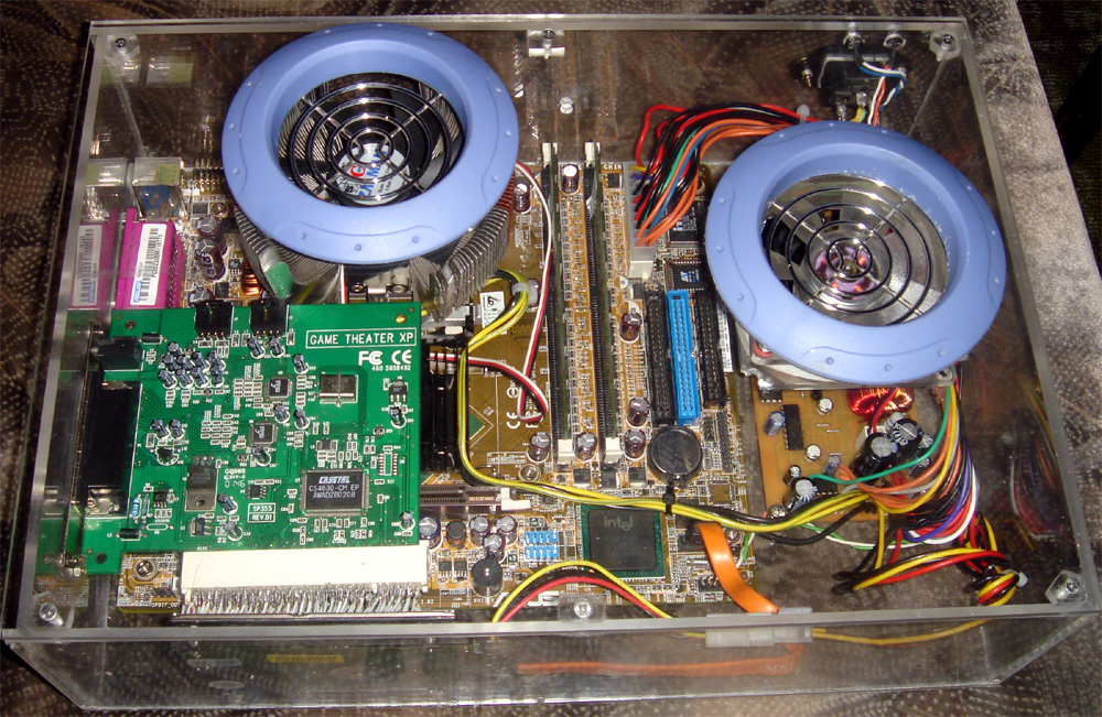 я как нить сам...в принципе всё доделал... осталось корпус напильником подравнять... (или так оставить... всё равно новый делать буду ) ) Собственно закрепил верхнюю крышку на саморезах - через проставочки. поставил вентилятор над БП - теперь не греется вообще... установил винт через втулочки сделанные из стержня гелевой ручки... со звуком было много возни. тот переходник припаяный напрямую к карте работать наотрез отказывался не лез в разъем и выдавало код 10 ))) ПРИШЛОСЬ ПЕРЕПАИВАТЬ ))) день ушел на то чтобы найти и выпаять разъем pci со старой мамки... и часов 8 пайки 120 проводков с двух концов опять ))). мде. зато теперь всё заработало как надо и звук есть и все шуршит и вертится. в выходные буду ставить в машинку, прокладывать силовые провода. полки в багажнике нету, ну по крайней мере хоть всё в действии посмотрю как работает. а там и полку сварганю.. вот три фотки одного и того же. Кому как а я доволен! 8) |