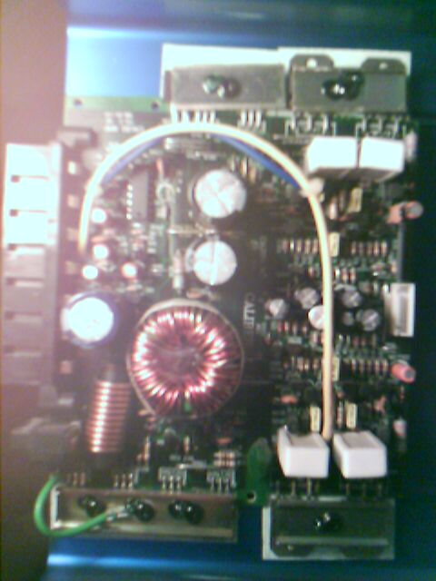Я конечно понимаю , что по фотографии трипер не лечат ... да еще по такой (фотик тоже сдох) , но может скажите чё померить можно мультиметром? Сдох он просто ... по моему не включился в какой то момент - сжег предохранитель. Эта схема работала без переделок уже несколько лет. И в ту ночь её никто не трогал. Померил сопротивление саба - как положено , 3.98 Ом. Нигде на проводах никаких коротышей нет. Усилок на 4 колонки стоящий рядом продолжает играть. Питание у меня в машине нормальное. Сопротивление (даже не полностью отключенном от всего усилке) на клемах "+" и "-" почти нулевое. Соответсна сразу же сгорает предохранитель. Если в цепи питания воткнуть лампочку - горит только она. Если вынуть предохранитель , соответственно с его разъемов коротыш идет с одного на минус , с другого на плюс. Внутри ничем не пахнет , на вид ничё не сгорело. Есть диод припаяный нажкой с "полосочкой" к разъему предохранителя ("+") , вторая нога припаяна к проводу идущему на массу (зеленый провод внизу (радиатор одной из микросхем усиления)). Если отключить этот провод от массы ... ничего не меняется (сопротивление на клемах питания по прежнему стремится к сверхпроводимости). желтый и синий провода , это , надо полагать , усиленные выходы как раз к ним подключается динамик при мостовом соединении синий это плюс первого канала желтый это минус второго канала З.Ы. Я так думаю такое КЗ найти проще чем что либо другое починить?