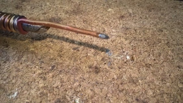 Не у всех есть паяльная станция с феном и паяльником с тонким жалом с регулировкой температуры. Но можно использовать обычный паяльник, просто для пайки мелких деталей его надо доработать. Берем медную проволоку диаметром 1.5-2.0 мм (у меня оказалась 1.75мм), плотно оборачиваем вокруг жала паяльника и выводим рабочий отрезок примерно в 2-3 см. Формируем кончик проволоки напильником в виде площадки примерно под углом в 45 градусов. Нагреваем паяльник (проволока будет нагреваться дольше) и залуживаем площадку на кончике проволоки. Последний раз редактировалось skanch; 07.10.2017 в 09:32. |