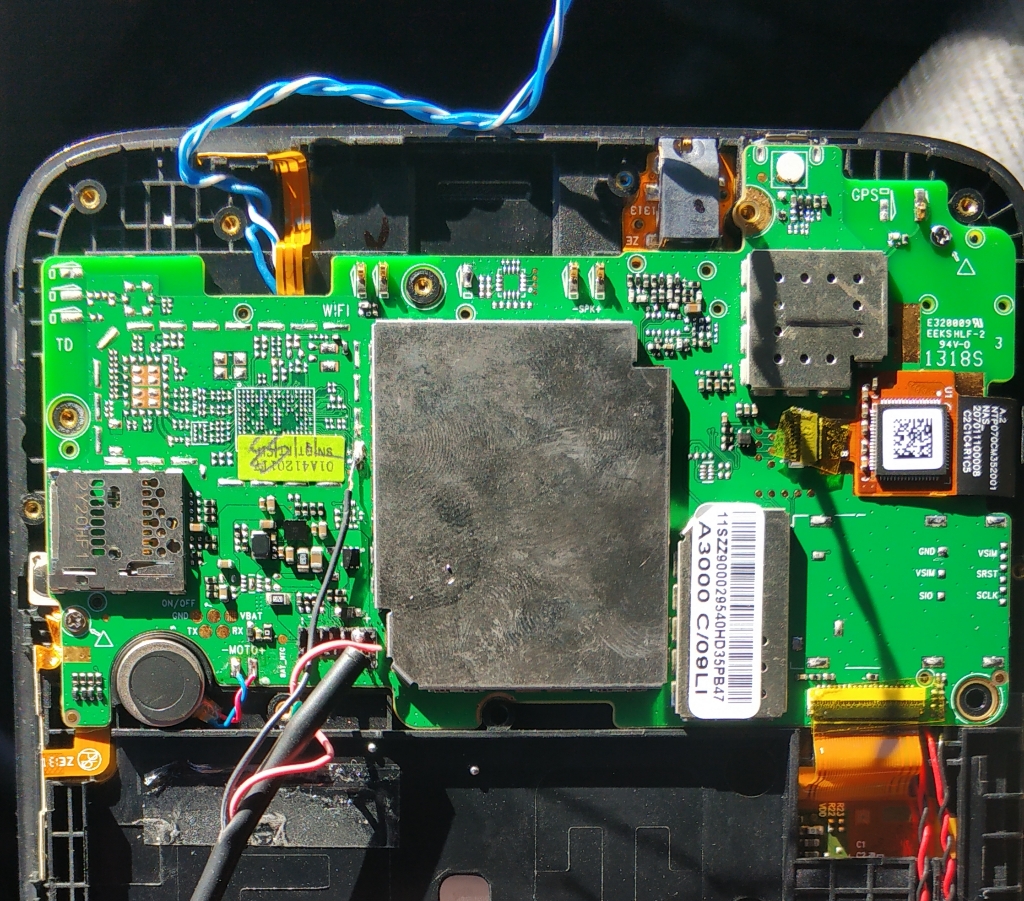 Провода нужно потолще поставить - 0,75 мм.кв. И померить напряжение на контактах платы в момент загрузки планшета. Если напряжение "проседает" ниже 4,3V, то блок питания под замену. Для простоты (надёжности) пайки проводов питания родной разъём лучше отрезать от батареи, паять преобразователь к его проводам и защёлкивать разъём уже на мат-плату.