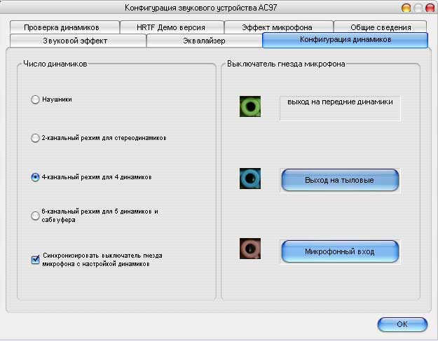 на epia выходы бери front - 2 штуки и rear - 2 штуки... в драйверах включишь режим четырёх колонок и драйвер же тебе нарисует какие из двух штекеров используются...