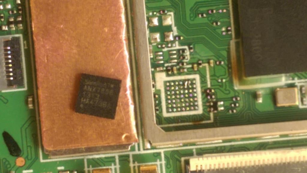 Первое, проверяем разъем usb и шлейф. Всеми комутациями в 2013 управляет SlimPort ANX7808, даты D+ D- с разъема usb через шлейф идут именно на него и уже с него в проц. Так вот, по каким то не веданным причинам он дохнет, у меня так и случилось. Можно конечно его заменить, если найдете, но я поступил проще, удалили его и линии дат подал непосредственно в проц. Минуса два для авто не критично: не работает ОТГ без внешнего питания, ну и вся лабуда с hdmi. Дальше все в фото: Последний раз редактировалось Denkos; 05.10.2016 в 10:16. |