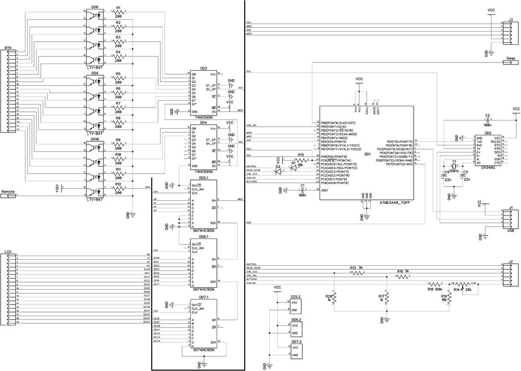 Делаю свою оболочку. Я хочу убрать полностью блок климат-контроля, а вместо него поставить планшет NEXUS7. Ну как Вы понимаете от блока я оставлю плату управления, а кнопки будет "нажимать" контроллер ATMEGA48, данные о температуре, положении заслонки, скорости вентилятора и т. п. он будет посылать на планшет, а также он будет посылать какая из кнопок на руле нажата и включать и выключать REM усилителя.