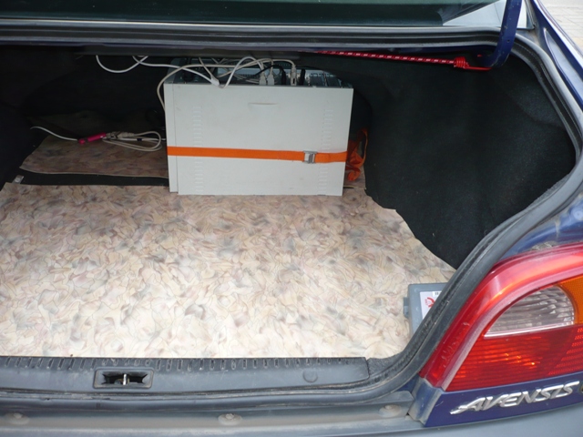 2. Системник весьма удачно вписался в багажник. с креплением мудрить не пришлось. хватило одной стяжки + благодаря размерам оказался зажат под задней полкой: