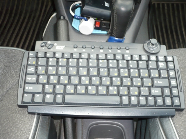 3. Здесь все временные решения. Так сказать до поступления денежных средств. беспроводная клавиатура, инвертор 12-220V Neodrive 400Вт. (надо сказать при простое автомобиля менее 1 часа его хватает для устойчивой работы карпутера.) в дальнейшем планируется заменить схему с инвертором на ИБП Лебедева и добавить к клавиатуре трекбол или нарульный ПДУ