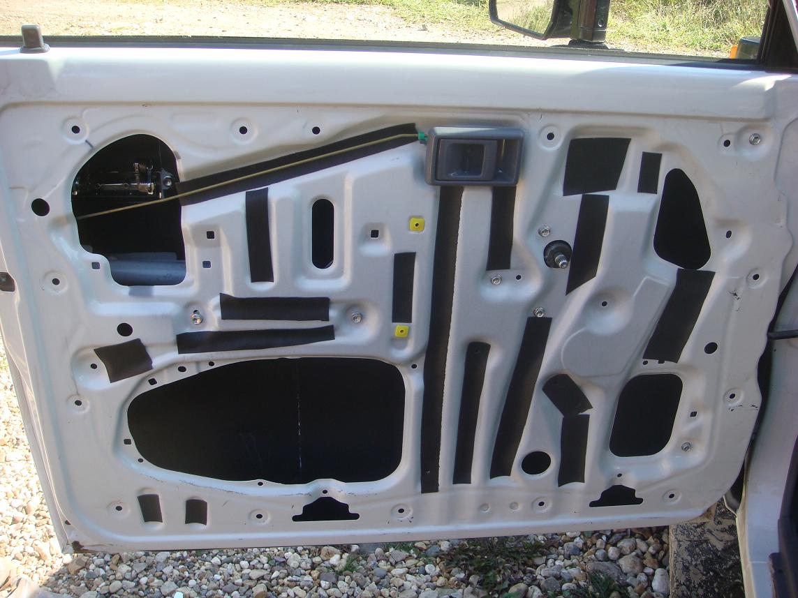 Не забываем так же о дырочках в дверях , ни в коем случае их не заклеиваем , ведь благодаря ним воздух в дверях меняеться и не возникает гниения . Шумка тут была использована другая , которая нибоиться влаги и с одой стороны метализированна ...Таким же образом была сделана звуковуха в задней двери .