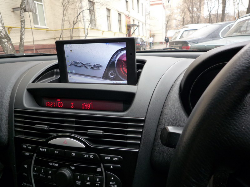 Установил в машину подставку для монитора и установил сам монитор. Подключил коробочку Car2PC для передачи звука с компа на штатную магнитолу. Подключил GPS-мышку BU-353. Провел все провода в бардачок. Остальное пока в процессе обдумывания и доводки. Ноутбук лежит в бардачке пока на картонной подставке и еще не подключен к питанию. Батареи хватает на 3 часа, периодически ношу его домой заряжать Поставил Centrafuse, IGO8, езжу радуюсь. Правда ноут не желает выдавать на монитор картинку 800х480, но я примирился и с 1024х600 - мелкий шрифт читать сложнее, но все еще возможно. Зато нет искажений пропорций (как при 800х600) и на экране все что надо влезает. В дальнейших планах подключение OBDII ELM327, нормальное питание ноутбука, USB-хаб. Система получилась очень простой в установке: на всю работу ушел всего один день на даче! Причем большую часть времени заняла разборка консоли и снятие магнитолы ![]() |