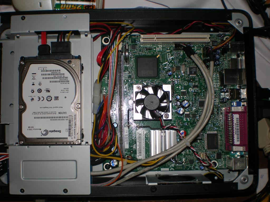 Сам компьютер поставил под полку бардачка.