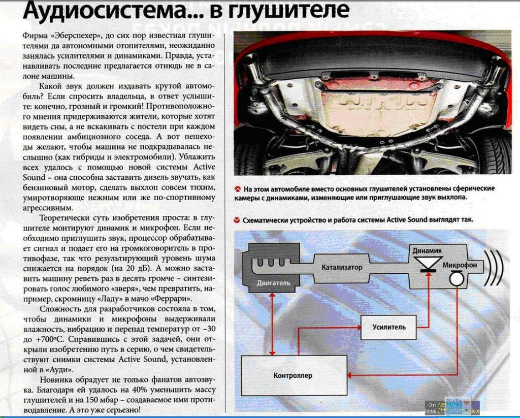 Есть такое устройство с помощью которого можно задать любой звук двигателя(порш, ферари и др) для вашего автомобиля, работает оно совместно с педалью газа через акустику автомобиля-как бы его найти в инете(не знаю как оно называется), и почитать про него, уж больно интересно как оно устроено