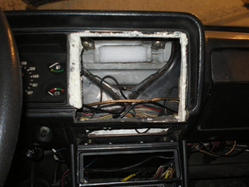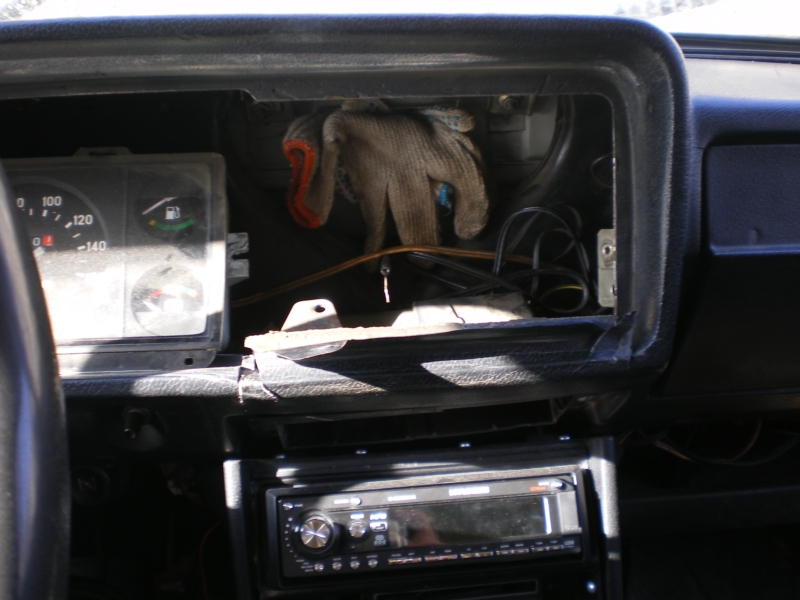 Начал я с того, что извлёк старую (не рабочую) магнитолу из места где она стояла вне штата (на месте вентиляционных решеток). К слову сказать машину брали БУ и музыка там уже была (но не работала), когда вскрыл ужаснулся (про паяльник люди которые устанавливали видимо не знали, как там ничего не замкнуло?). Купил новую, подкупил вход AUX и стоила не дорого. Попробовал на столе, вроде всё пашет и на карту памяти радио пишет в МП3. Прикупил в магазине пластмаски для колхозного творчества и начал пилить. Понимаю, что русские криворукие в основной массе, но как понять инженеров ВАЗА которые до этих пор выпускают так называемые бороды, в которых место под магнитолу рассчитан под старый чуть не ламповый приемник (в природе давно не существует). Припаял новую, вставил динамики в передние двери (как я вставлял лапухи в двери – это отдельная история), перенёс некоторые органы управления в другие места. Вырезал дырку в торпедо и начал подгонять (как смог) детали с помощью монтажной пены, клеящего пистолета и еще разных подручных инструментов В будущем я надеюсь будет заглушка. К стати сказать, шпаклевка дрянь страшная, но валялась в гараже без дела год или больше на морозе, надо было использовать. Попробовал вставить бук, вроде стоит, надо теперь окультурить на сколько смогу. |