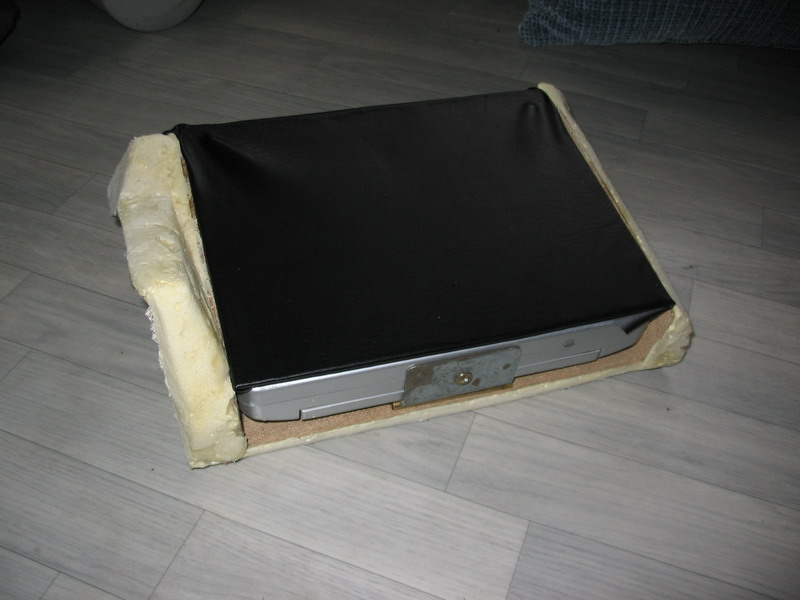 Сначала неплохо смотрелось, потом кожа покоробилась. Думаю вот снова ее содрать, побольше шпатлевкой намазать, и снова обклеить.