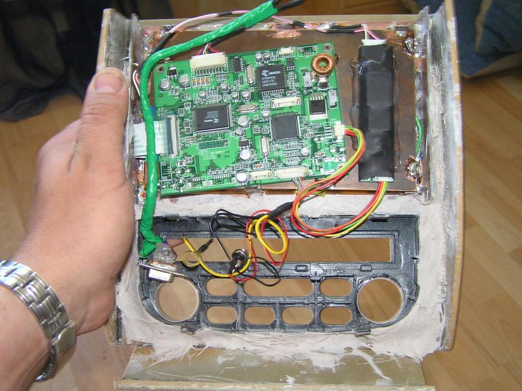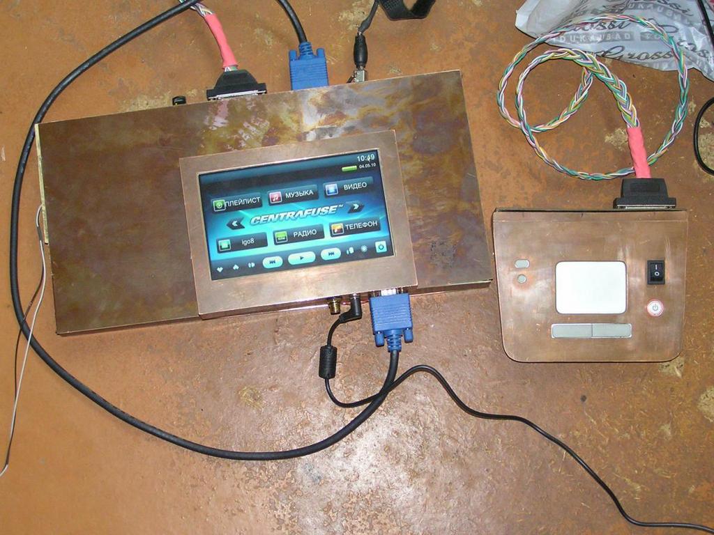 Выкладываю свой проект. На данный момент комп уже установле в машину, остались мелкие недоработки. Проект, в его изначальном виде, задумывался как малобюджетный и с минимальным куроченьем салона. В последствии всё кординально изменилось до нельзя. Вообще Зафира малопригодна для встраивания чего-либо - панель разбирается на три части, большой климат-контроль (по размерам). В багажнике вообще делать нечего, ибо там весь пол занят парой доп. кресел. Изначально планировалось сделать монитор съемным, но будущая лень впоследствии сказала своё решительное НЕТ. место выбиралось долго - хотел установить вместо штатного борт.компа, но даже 7 дюймовый монитор туда не лез. Магнитолу трогать не хотелось по многим причинам. Решил оставить и использовать в качестве усилителя. переделал вход для телефона пример вот примерно по такому сценарию (где про плеер). За основу (на первое время) решил приобрести ноут с разбитым экраном. донор был быстро найден (Тошиба М35Х), к тому же в придачу к нему был отдан точно такой же, но нерабочий. Позже решено упаковать материнку от него в самодельный корпус. Т.к. планировалось приобрести монитор без тачскрина, из второго ноута был выдран тачпад и вмонтирован в отдельную панель, которая устанавливается на место подстаканников, в ней же находится плата реле и кнопки включения ноута и усилителя магнитолы. Монитор был приобретен на ебейе за 60 евро с пересылкой. позже, на местном инет-аукционе купил тачскрин, правда пластиковый, других здесь не нашел.