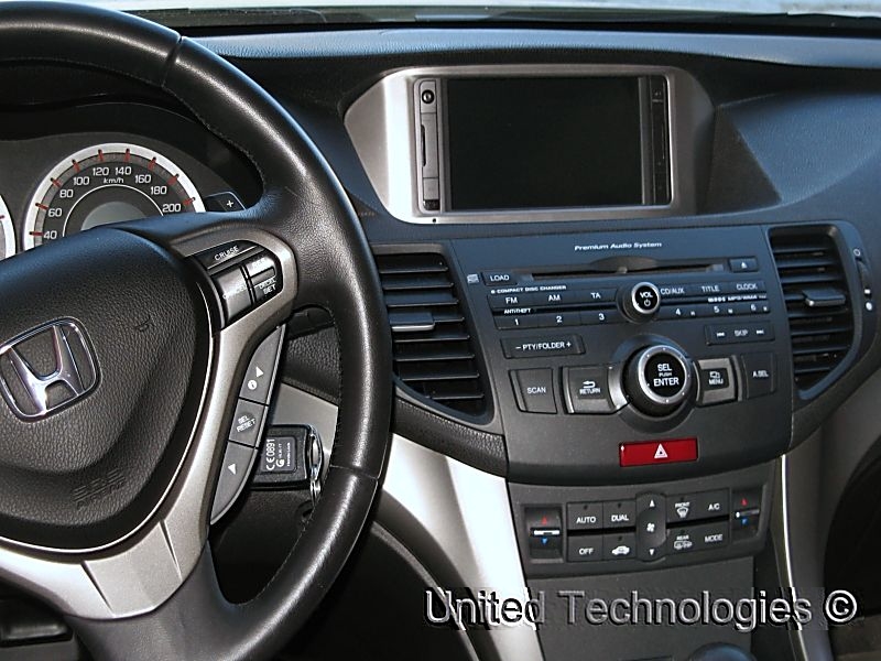 Объект проекта - достойный, а в некоторых чертах и превосходный, представитель бренда, к почитателям которого имею честь относиться. Европеец, 8-я генерация. Как опция, для европейской и американской (Acura TSX) версий автомобиля доступна навигационная и развлекательная системы. Придают законченный и современный облик интерьеру автомобиля. Ложка дегтя - в комплектации для России эти опции недоступны. Т.е., владелец лишен не только интерфейса навигации (в стоке, у Honda в купе с Navteq, ступор в части оцифровки картографической базы России), но и таких элементарных функций, как парковочная камера. Владельцы довольствуются монохромным LCD, на котором отражается информация о состоянии устройств аудиосистемы и климат контроля. Редкий из них не хочет изменений подобного положения. Не имеет смысла искать ответ на вопрос - почему Honda не предоставила возможности выбора российским гражданам. Важен выход из сложившейся ситуации. Конечно, возможно самостоятельно закупить элементы стоковой навигационной системы и установить их. После поиска OEM компонент и возни с проводкой все работает как и в заводской комплектации. Огорчает только соотношение цена\функции, ведь стоимость оригинальных частей превысит 4 тысячи не наших. Как говориться - свято место, пусто не бывает.. и на рынке уже широко представлены изделия китайской индустрии.. В абсолюте - WinCE, без притязаний на эргономику управления.. В общем - на любителя, с определенной степенью уважения к себе. Реализованный проект - попытка найти альтернативное решение, в силу чего сформулированы технические требования и условия. В их числе: - максимальные функциональные возможности (Navi, Multimedia, Internet, HFL, Digital TV, Rear Cam &etc.); - время готовности системы к работе < 6 сек.; - соблюдение эргономических параметров управления, в т.ч. touchscreen ; - отражение информации штатной системы на дисплее встраиваемого устройства; - суммарное энергопотребление всех устройств системы в режиме StandBy <0, 08A - отсутствие вмешательства и нарушений заводской конструкции автомобиля; - общее время на установку или демонтаж (возврат к исходному состоянию) <1час.; - совокупная стоимость элементов системы и их установки не должна превышать 50% стоимости заводской навигационной системы. Что имеем в результате: В стоке ОЕМ LCD расположен в глубокой нише главной панели. Передний срез ее представляет пересечение криволинейных плоскостей, что подталкивает к мысли не искать приключений и расположить новый монитор так же, как и в заводской навигации. Но тогда остается открытым вопрос по эргономике управления. Размещать touchscreen вне зоны досягаемости руки смысла большого не имеет.. Посмотрим, что располагается за ним: Место достаточно не только для монитора, но и для компьютера.. еще больше задумываемся. Что бы не тратить время попусту, поручаем выбор компоновочного решения подсознанию, а тем временем решаем задачу вывода информации штатной системы на альтернативный монитор. Смотрим, что там у OEM LCD внутри: Ищем datasheet - фигвам, запрашиваем производителей микросхем - гордое молчание.. Идем не самым быстрым, но верным путем - пишущий осциллограф, различные shniffer, физический и логический уровни, крепкий и не очень чай, бессонные ночи - все, капитуляция - две шины и три логических потока капитулировали безоговорочно. Подписание меморандума: http://www.youtube.com/watch?v=ytd9sjHjA2U Тем времен
