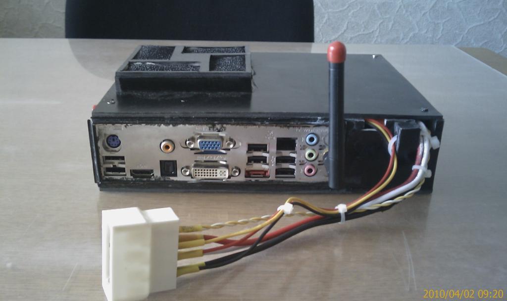 Материнская плата Mini-ITX ZOTAC GeForce 8200-ITX WiFi BU-353 - выносной GPS приёмник с USB интерфейсом Портативный USB HUB D-Link Блок питания M2-ITX Автомобильный VGA монитор LILLIPUT GL859-80NP/C/T с сенсорным экраном Жесткий диск 2.5 250 Gb RAM 2Gb и другая мелочевка. Дома был собран корпус и все в него установлено и настроено. |