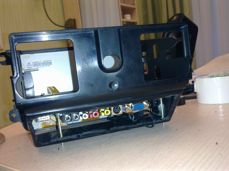 Хочу поделиться своим проектом. :) Изначально требования к системе предъявлялись такие: - "штатная" навигация (главное требование, чтобы ничего не приносить/уносить с собой) - более менее качественная музыка - отказ от использования компакт дисков и флешек (опять же, чтобы ничего не таскать с собой из дома) - интернет (почта, погода, Skype, ICQ) - hands-free Также в перспективе планируется уставновка камера заднего хода. И кроме этого, задача была в том, чтобы реализацию данного проекта вписать в бюджет до 15 т.р. И мне почти это удалось! :) Общий вид проекта: Снаружи: Внутри: Основным импульсом к началу строительства была замена старого 3ех летнего ноутбука на новый. Было принято решение взять как раз его за основу всей системы. Смысла продавать отдельно я не видел, т.к. в инете за него давали до 3000р. в идеальном состоянии, а у меня были отломаны края у корпуса (недоработка ASUS'а) и вообще он выглядел довольно потрепанным. Так что можно считать первоначальным вложением в систему этот ноутбук. Далее необходим был экран. Так как систему планировалось инсталировать в 1din\2din адаптер под магнитолу, размер моника подбирал исходя из соображений максимально возможной диагонали, вообщем что влезет. Выбор пал на 8.9" BS SKD8.9VAS-9 + touchscreen. Был приобретен новым в Питерской конторе торгующей электронными компонентами за 5300р. В процессе использования у моника был выявлен один весьма существенный минус - невозможность отключить синий экран при отсутствии сигнала. Но частично эту проблемку решить таки удалось просто подключив управление питанием монитора через USB разъем ноута. Сделал 2 реле, одна 5 вольтовая, при включении компа подавала 12 вольт на силовую релюху, которая, в свою очередь, включала монитор, усилитель и активную антенну. Кстати самому монику потребовалось таки свое питание. От автомобильной сети работать он не захотел, поэтому пришлось приобрести бпшник 9-14в > 12в. Проблему питания самого ноута я решил простым приобретением нового фирменного ASUSовского автомобильного з/у для ноута за 1100р. После покупки моника и бп начался процесс хирургического вмешательства. Исходный вид торпеды а/м: Еще видна установленная стандартная 1дин магнитолка без морды. Собственно сам, почти готовый корпус карпутера. В процессе доработки. Собственно доработка нужна была минимальная. Убрать перемычку между 1дин отсеками... …и освободить место для платы контроллера монитора. Справа кстати лежит орудие трепанации - гравировальник bosch с фрезой по пластику. :) Для «испытаний», дабы не ломать дорогой монитор, я сделал его имитацию с точными размерами из картона, и выпиливал уже по этому шаблону. Почти законченный вид. Остались видны только два отверстия от перемычки. Но их предполагается убрать без применения шпаклевки, краски и т.п. Вид с зади. :) Кстати, в получившимся корпусе, как оказалось, хватило бы места для установки Mini-ITX материнской платы и бп. Испытания! :) На фотке виден ноут уже со снятым экраном. Сам экран планируется установить под потолок для задних пассажиров, на откидывающемся моторизованном креплении. Последний раз редактировалось neoseven; 04.12.2011 в 16:15. |