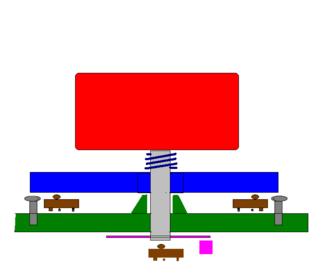 Синий - качающаяся крестовина. По краям стопорные регулируемые винты и микропереключатели. Зеленый - основание с центральной опорой для крестовины. внизу розовый диск и датчик вращения колеса.