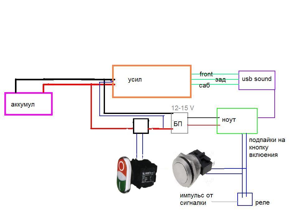 Получается вся установленная техника будет полностью обесточена выключением кнопки (кроме усилка -он будет подсоединен но отключен, т.к. сигнал ремоут возьму после кнопки).