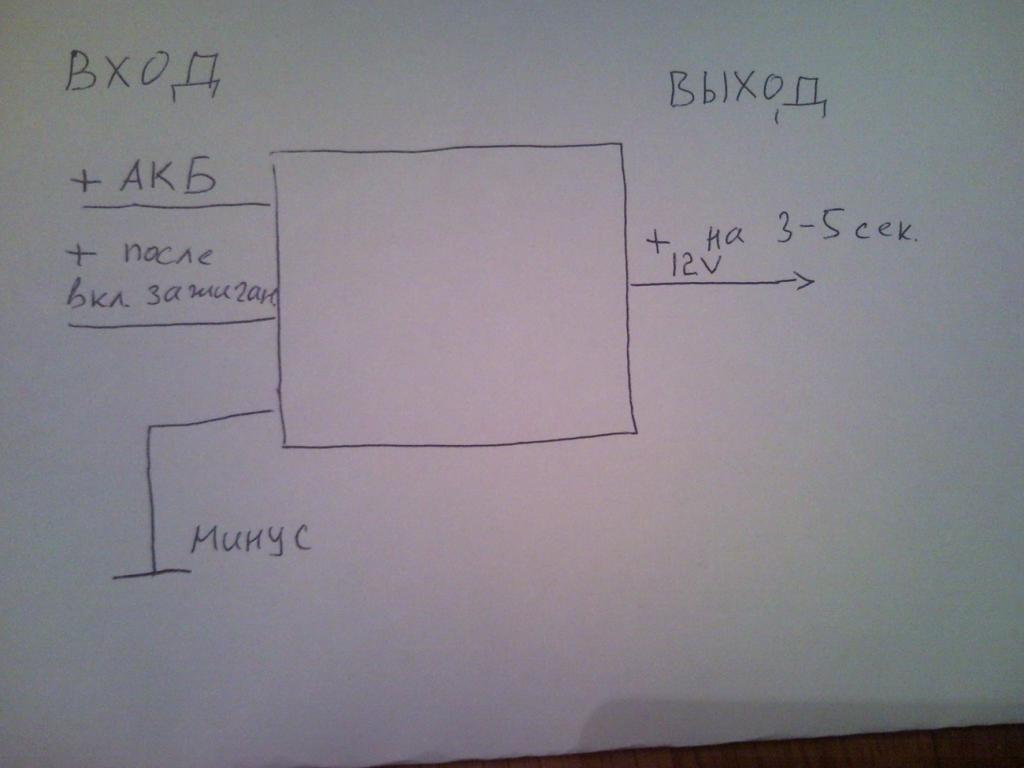 ну а если и после выключения зажигания удасться получить теже +12 вольт на 3-5 секунд , можно даже на другом проводе , это будет вообще здорово . вот примерно так : |