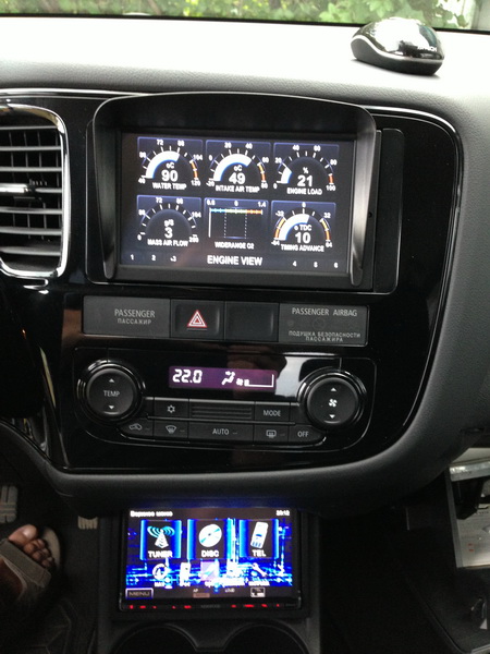 Выношу на всеобщее обозрение мой проект. Еще до покупки авто, думал как все будет, прошел год моих проб и ошибок, и результат мне нравится. Сердцем моей системы является Aser Aspire Revo с увеличенной памятью и винтом, сейчас на борту 4Гб и 120Гб CCD. Моник заказал в Китае, и самое интересное, держит разрешение 1600х1200. Музыкальный центр поставил Kenwood DDX 6051 BT. Все связано между собой. Установлен парктроник с камерой заднего вида, выводится на верхний монитор. В компе реализована работа видеорегистратора, камера(обзор 160 градусов, оприка с другой камеры подбиралась) стоит на лобовом стекле. На компе установлена, навигация, диагностика через адаптер, и все что можно придумать на компе, есть модем. Kenwood работает в паре с Айфоном. Я имею ввиду вывод видео дисплея на экран магнитолы ну и родные функции. Также установлен винт на 320Гб с киношками и клипами.