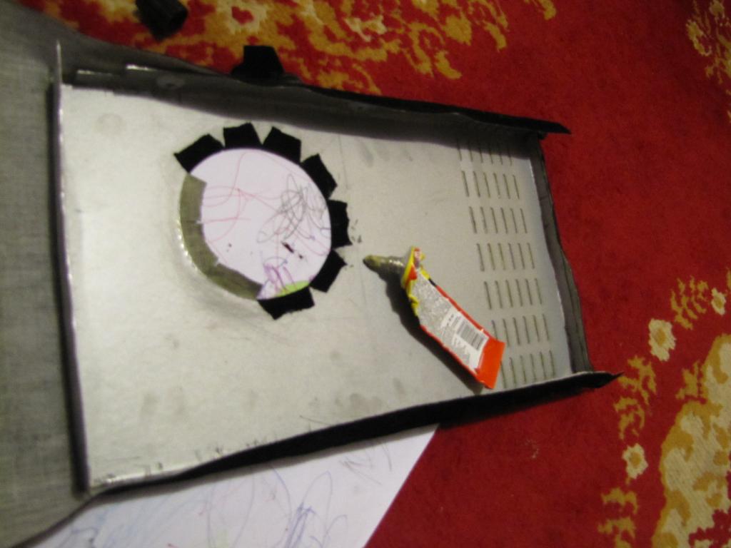 А это мой маленький помощник, который помогал делом и советом. Когда карпютер был готов дело встало за корпусом, который был собран из старого корпуса ATX. Обшиваю корпус карпетом. |