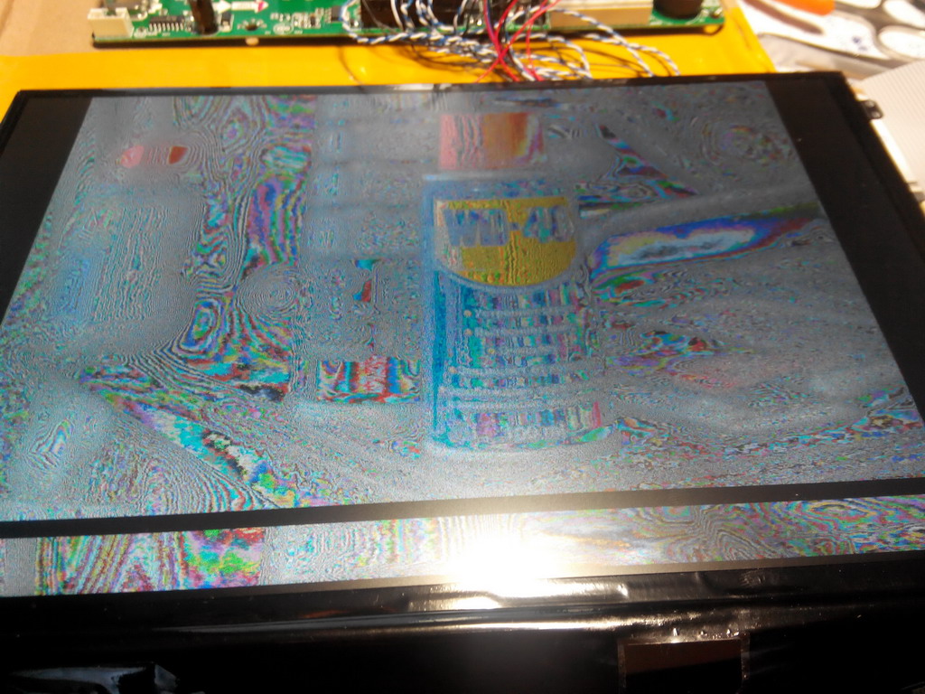 Разъём на матрице нестандартный попался, двухсторонний 50-и пиновый поэтому пришлось кустарничать, в общем видите на фото как он показывает... Подскажите, пожалуйста, почему такая картинка? |