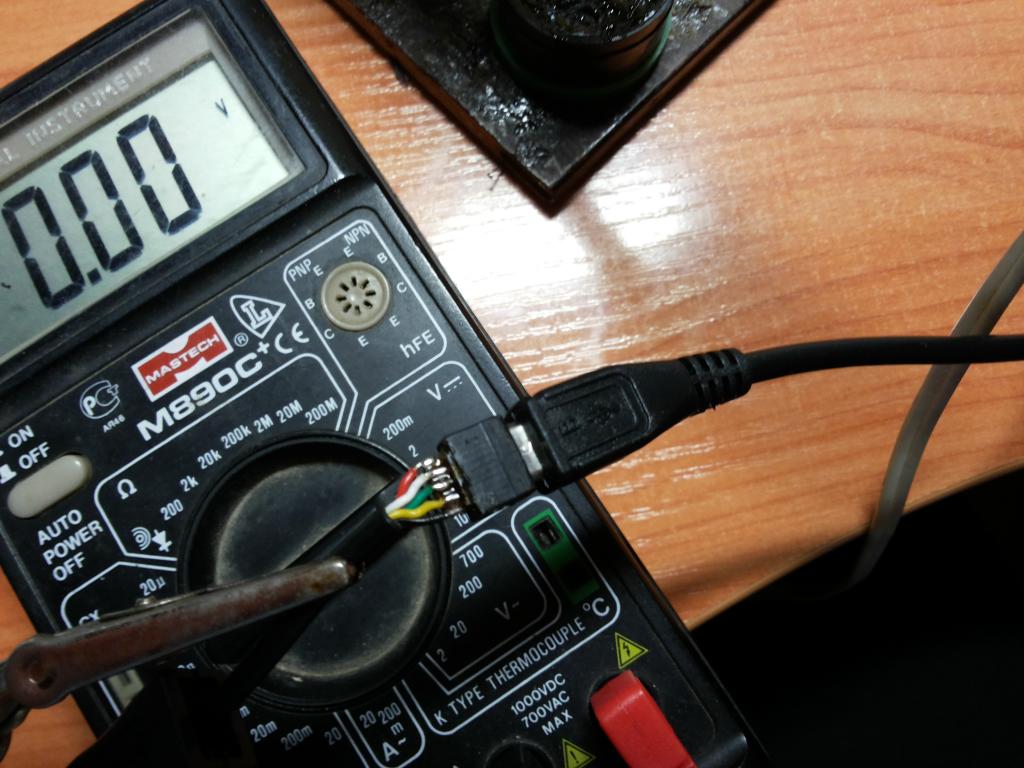 На плате обнаружились пятаки, которые дублируют контакты usb , под паял к ним и вывел гнездо micro usb которое отрезал от Y - коннектора. |