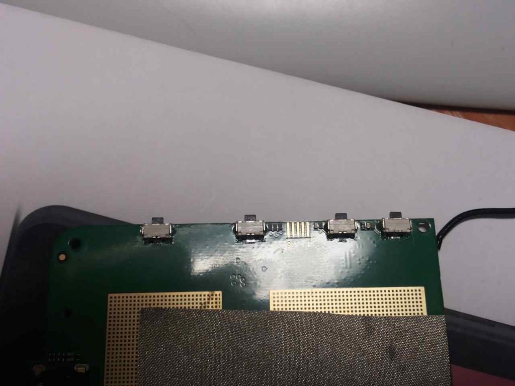 Выводим кнопки управления из корпуса. При разборе планшета были обнаружены контактные площадки. Прозвонил. Идут к кнопкам "+","-","Power". кнопка Reset на контактах отсутствует. Блин дорожки мелкие.... Но подпаял. Но можно было прямо к кнопкам подпаять. Шлейф проводов вывел на обратную сторону. залью клеем |