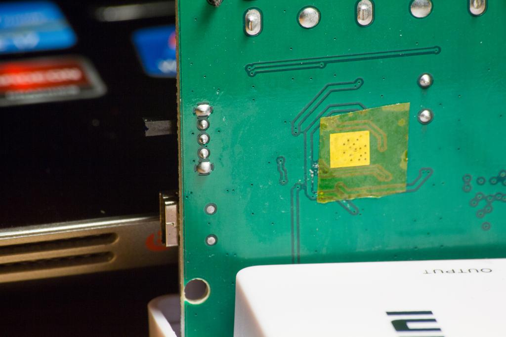 Фото. Обратите внимание, селектор NTSC/PAL распаян, но дорожек к нему нет. Даже в среднем слое.