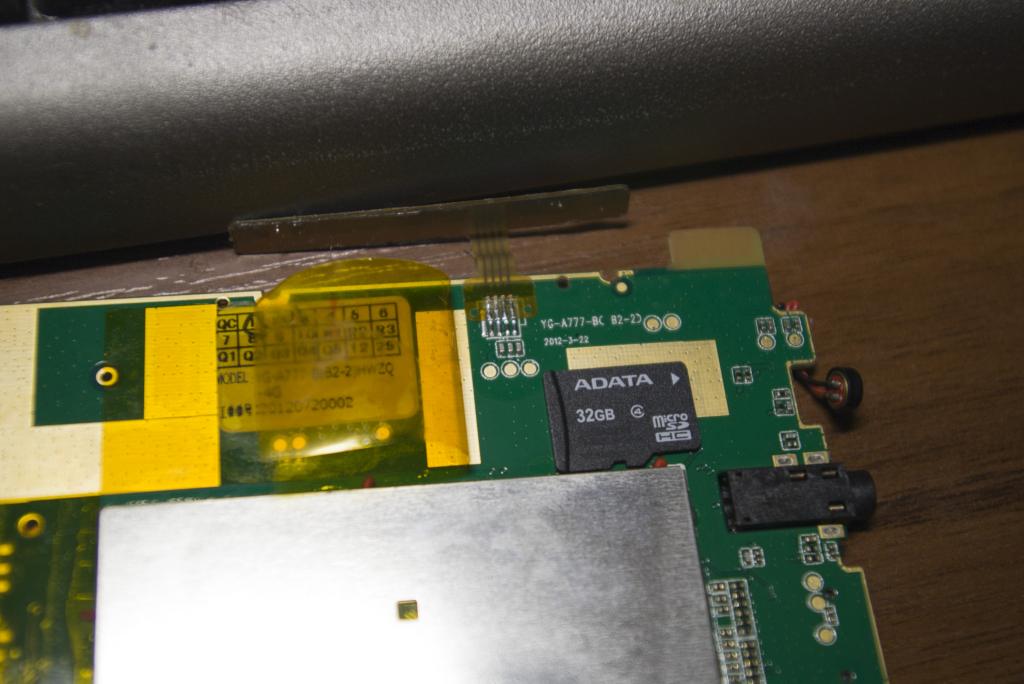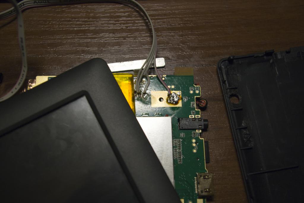 Когда покрыл рамку лаком и снял скотч обнаружил, что планшет не включается. Оживить его удалось только после того, как я извлек АКБ, плату и экран из корпуса и подключил к USB. Пока разбирал повредил шлейф тач-скрина. Как думаете где в Москве можно приобрести такой тач-скрин?